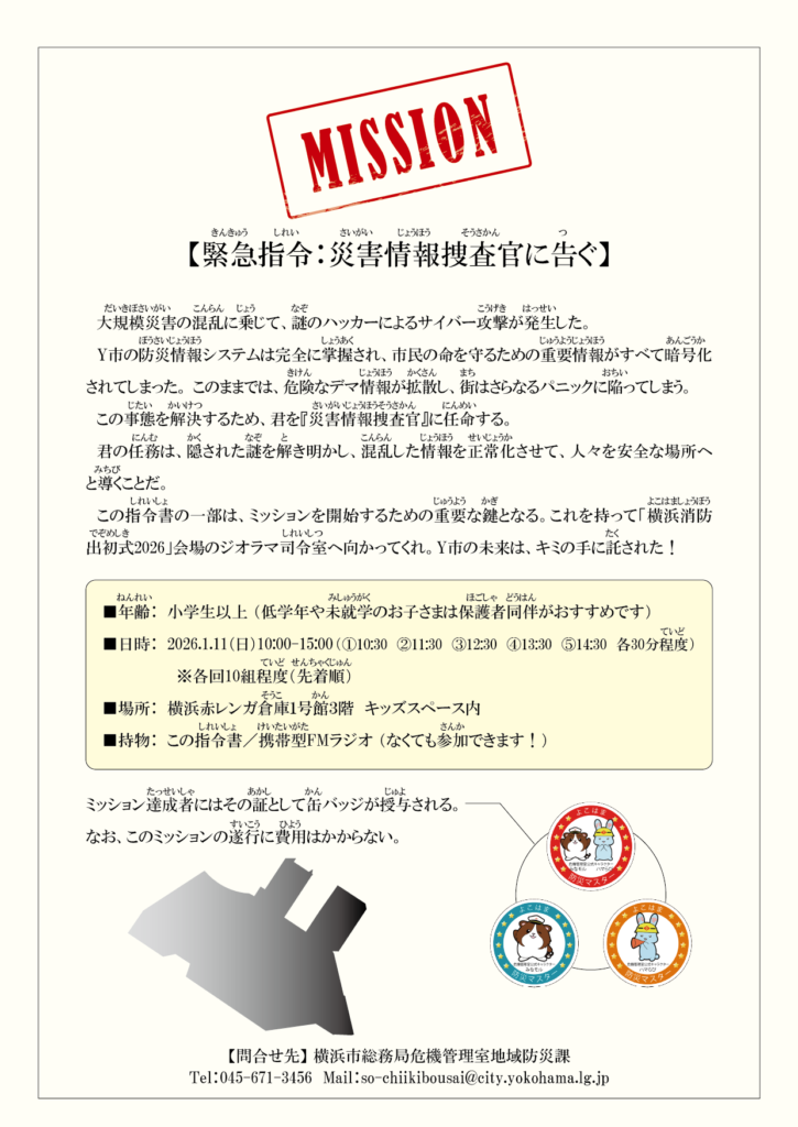 Tel:045-671-3456 Mail:so-chiikibousai@city.yokohama.lg.jp