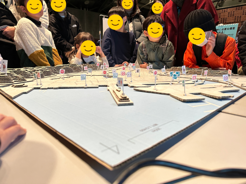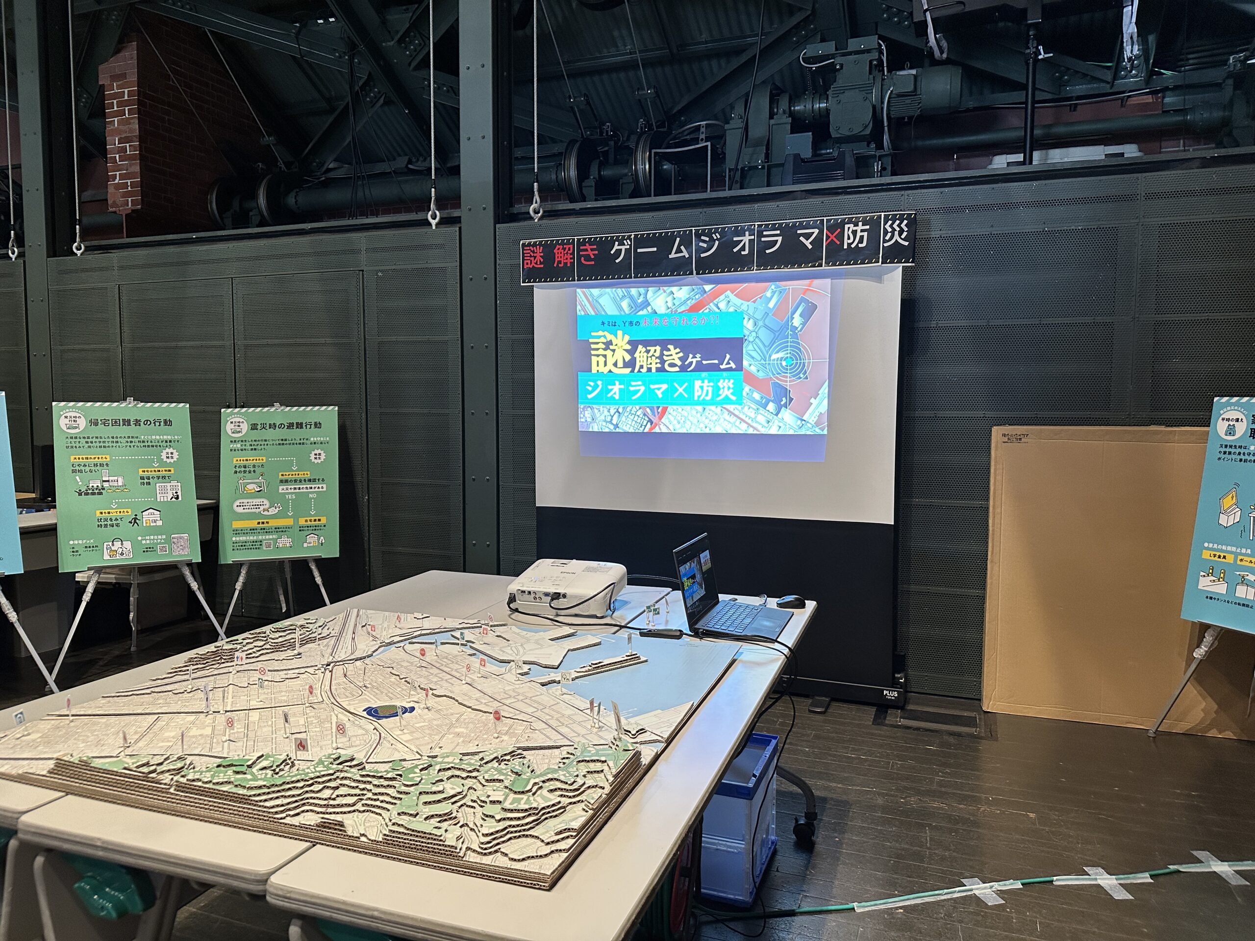 危機管理室さんのブースにて、関内・みなとみらい周辺のジオラマを使い、大地震直後の横浜を舞台にした災害謎解きゲームを実施しました。