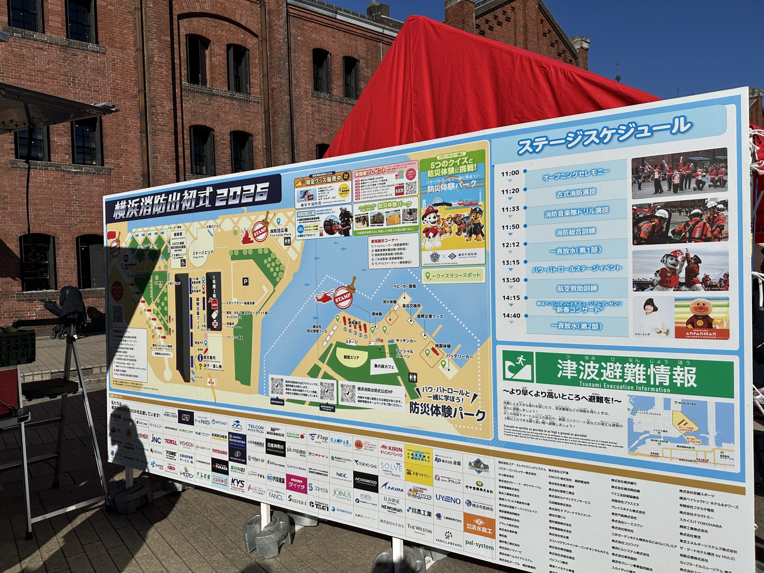 1月11日、横浜市消防局の出初式で赤レンガ倉庫へ。